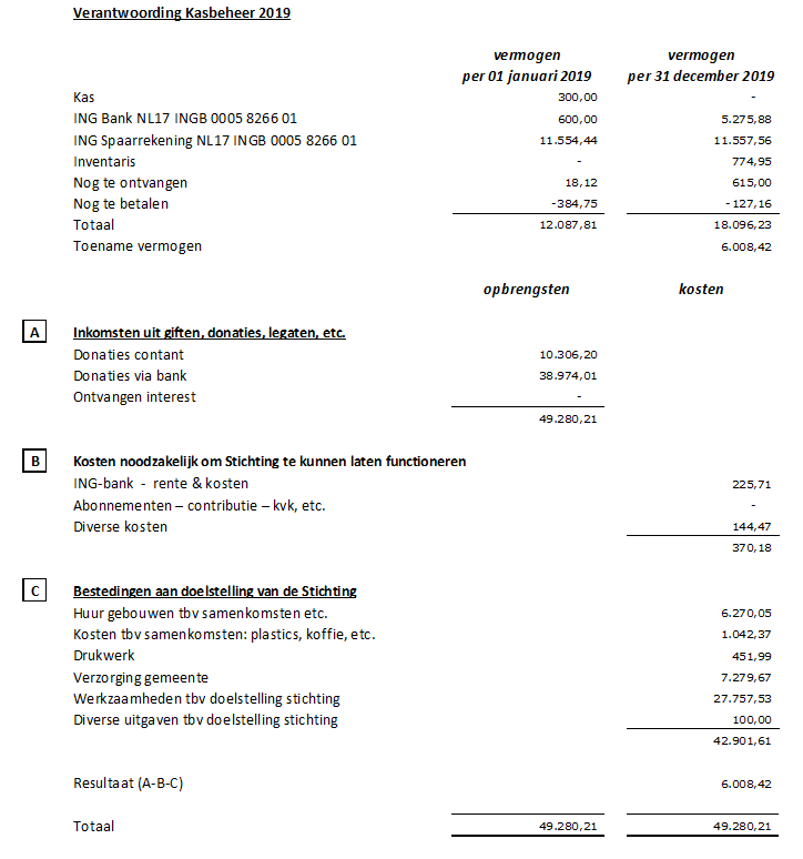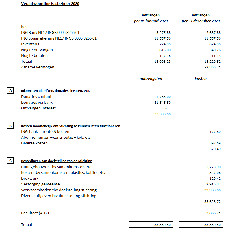 Er is geen beloningsbeleid, leden (incl bestuur) van de stichting werken op vrijwillige basis. Er zijn geen betaalde functies.